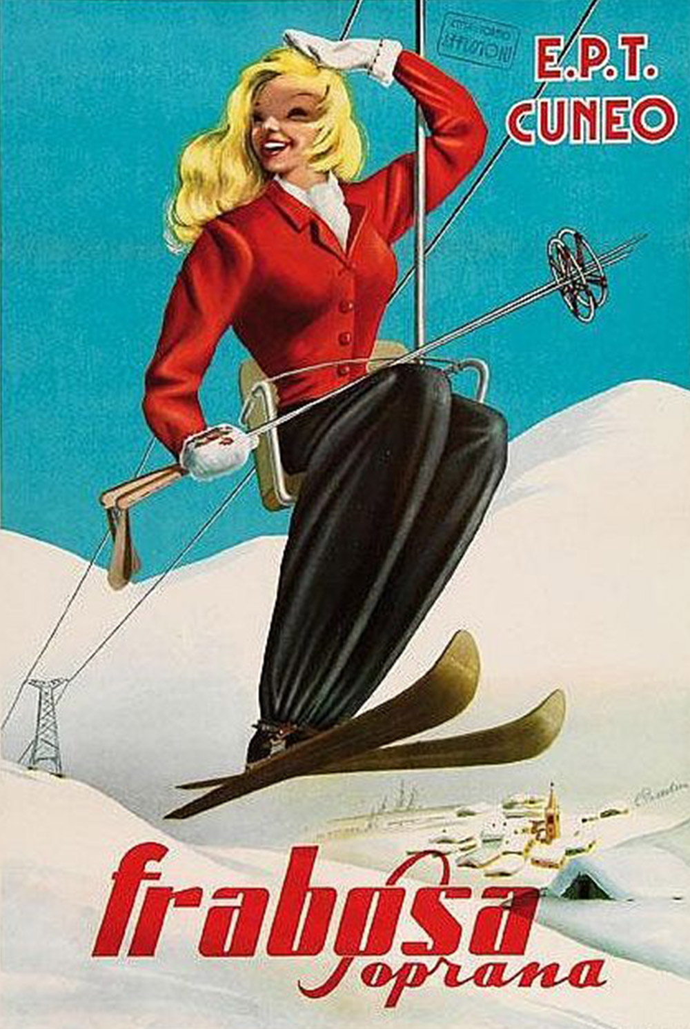 Frabosa affonda le sue radici nella storia dello sci piemontese. Nel 1948, con la costruzione della seggiovia di Monte Moro — la più lunga d’Europa — e la partecipazione del frabosano Eugenio Bonicco alle Olimpiadi, si inserì di diritto tra le stazioni sciistiche più importanti del Nord Italia.